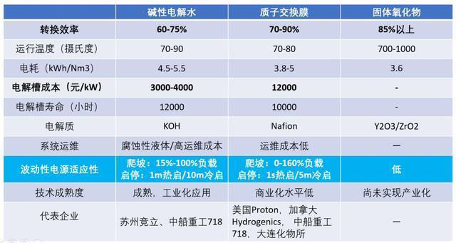 電解制氫技術(shù)的主要方案對(duì)比