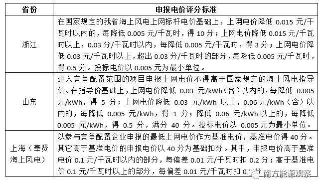 山東也在近期公布了海上風(fēng)電競(jìng)爭(zhēng)配置方案,該方案將降價(jià)幅度限制在0.1元以內(nèi),按照規(guī)則,業(yè)主在指導(dǎo)電價(jià)的基礎(chǔ)上降0.1元就可以拿到滿分40分。山東2019年通過競(jìng)爭(zhēng)配置確定的4個(gè)項(xiàng)目的申報(bào)電價(jià)均在0.79元/千瓦時(shí),四個(gè)業(yè)主在申報(bào)電價(jià)競(jìng)爭(zhēng)要素中得分相同。