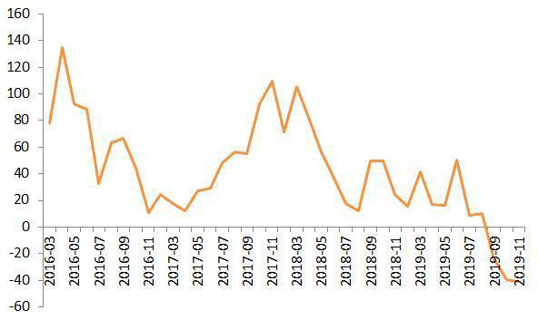 伴隨著下游的負增長,壓力也傳導(dǎo)至了上游的動力電池行業(yè)。據(jù)高工產(chǎn)業(yè)研究院(GGII)12月9日發(fā)布的《動力電池月度數(shù)據(jù)庫》統(tǒng)計顯示,2019年11月動力電池裝機量約6.29GWh,同比下降29%。
