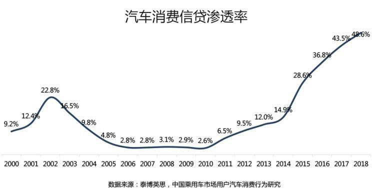 『2001-2017年利用汽車消費信貸購車的汽車用戶比例』