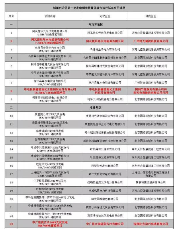 首批示范保留的5個(gè)項(xiàng)目總計(jì)規(guī)模還有77MW/154MWh,和原本公示清單的221MW/446MWh相比,已經(jīng)縮水大半。依然在南疆推進(jìn)項(xiàng)目的投資者還剩下智光儲(chǔ)能、國(guó)網(wǎng)節(jié)能、陽(yáng)光電源、比克電池和猛獅科技,其余的多家投資者,因未如期推進(jìn)而暫告撤離。