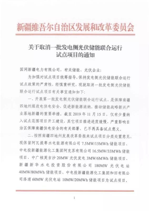 “儲(chǔ)能100人”獲悉,12月4日,新疆發(fā)改委正式下發(fā)文件,取消了這批項(xiàng)目中的大多數(shù)。