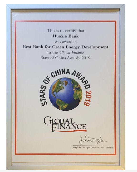 11月11日,在美國《環(huán)球金融》雜志2019年“中國之星”頒獎儀式上,華夏銀行憑借綠色金融支持清潔能源發(fā)展的突出表現(xiàn),再次獲得了“最佳綠色能源開發(fā)銀行獎”。
