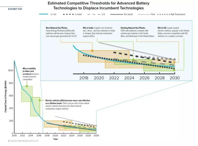 電池技術的「競爭閾值」預估,及如何取代現(xiàn)有技術 | RMI 研究報告