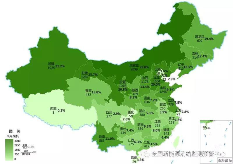 截至9月底各地區(qū)累計(jì)風(fēng)電裝機(jī)(萬千瓦)及占本地區(qū)總裝機(jī)比重