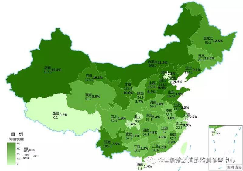 截至9月底各地區(qū)累計(jì)風(fēng)電發(fā)電量(億千瓦時(shí))及占本地區(qū)總發(fā)電量比重
