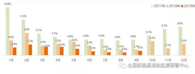 截至9月底全國棄風(fēng)率月度變化情況