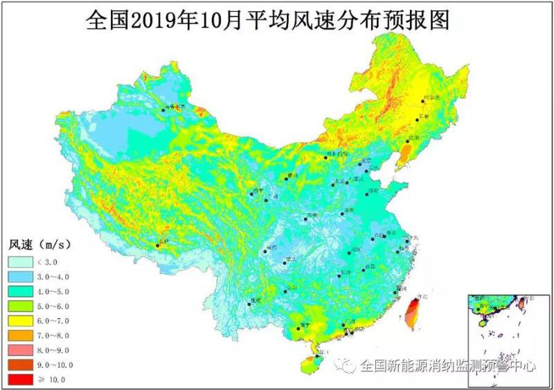 附圖1 全國2019年10月平均風(fēng)速分布預(yù)報(bào)圖