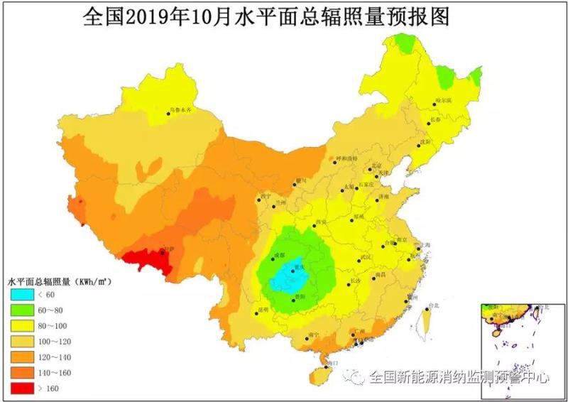 附圖2 全國2019年10月水平面總輻照量預(yù)報(bào)圖