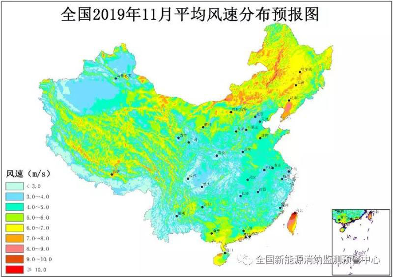 附圖3 全國2019年11月平均風(fēng)速分布預(yù)報(bào)圖
