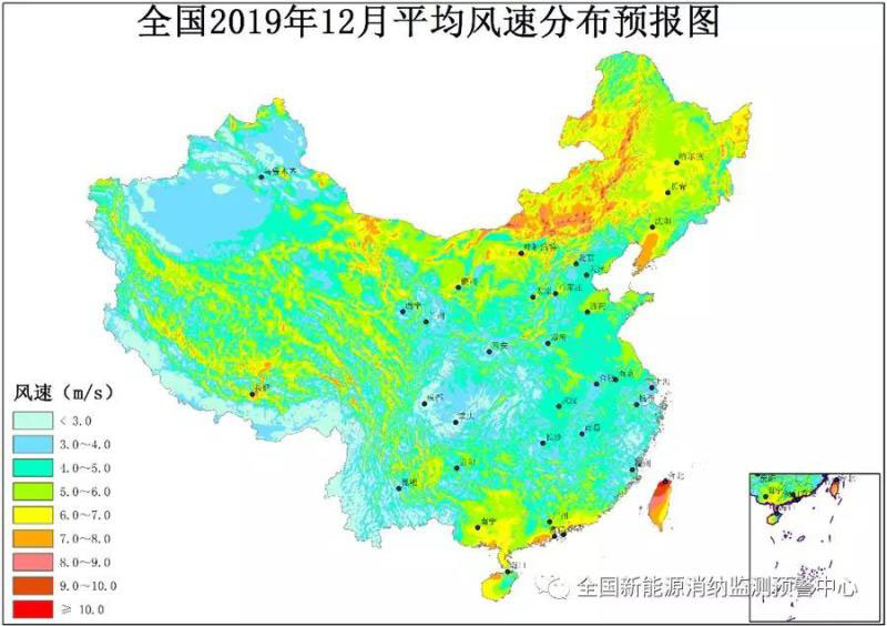 附圖5 全國2019年12月平均風(fēng)速分布預(yù)報(bào)圖