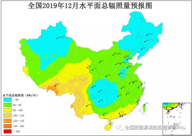附圖6 全國2019年12月水平面總輻照量預(yù)報(bào)圖
