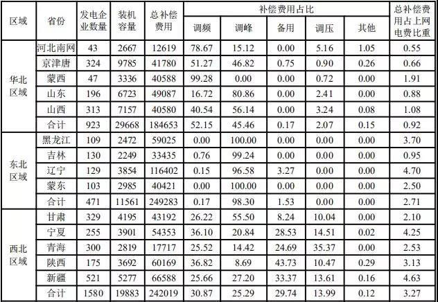 (一)各區(qū)域電力輔助服務(wù)補(bǔ)償費(fèi)用情況