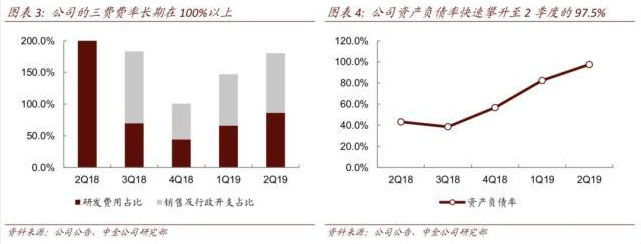 2019年第二季度,蔚來因汽車自燃事件召回了4803輛ES8,損失約3.39億元,導(dǎo)致報(bào)告期內(nèi)虧損同比增加83%。據(jù)中金公司數(shù)據(jù),隨著經(jīng)營(yíng)虧損與凈虧損逐季度攀升,蔚來資產(chǎn)負(fù)債率在二季度已達(dá)到97.5%,前期累積虧損已成為蔚來沉重的包袱。