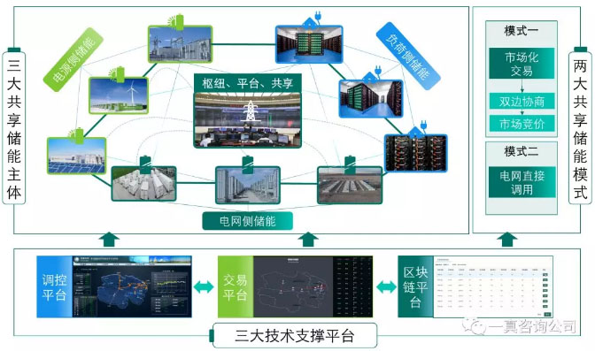 為支撐三大場(chǎng)景應(yīng)用,產(chǎn)品創(chuàng)新設(shè)計(jì)兩大共享儲(chǔ)能運(yùn)營(yíng)模式和三大技術(shù)支撐平臺(tái)。