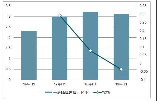 16H1-19H1干法隔膜產(chǎn)量及增長(zhǎng)
