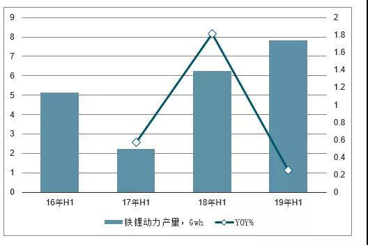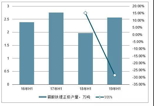 16H1-19H1磷酸鐵鋰正極產(chǎn)量及增長(zhǎng)