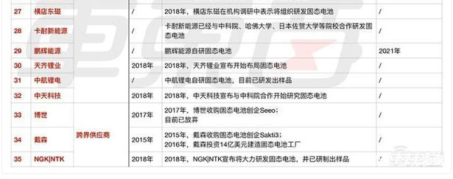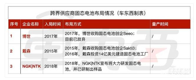 雖然跨界的玩家并不多,但從投入金額與部署力度來(lái)看,傳統(tǒng)汽車(chē)零部件供應(yīng)商與其他領(lǐng)域的玩家也非??春霉虘B(tài)動(dòng)力電池的前景。