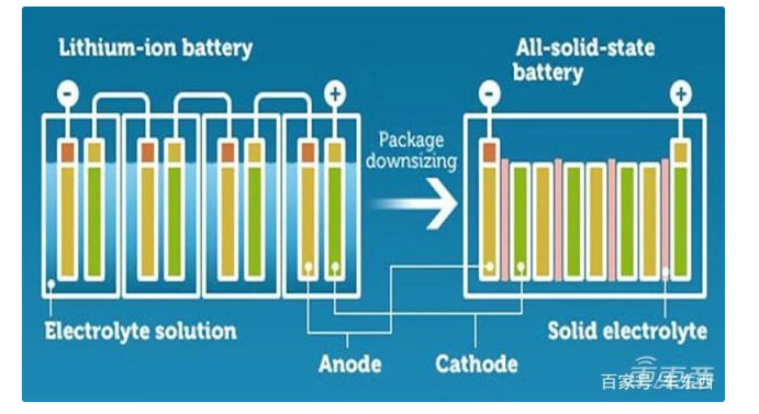 ▲傳統(tǒng)電池(左)與固態(tài)電池(右)結(jié)構(gòu)原理圖對(duì)比