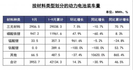 日前,中國汽車動力電池產(chǎn)業(yè)創(chuàng)新聯(lián)盟發(fā)布了9月份的新能源汽車動力電池數(shù)據(jù)。數(shù)據(jù)顯示,2019年9月,我國動力電池裝車量共計4.0GWh,同比下降30.9%,環(huán)比上升14.3%。其中,三元電池、磷酸鐵鋰電池裝車量分別為2.9GWh和0.9GWh,環(huán)比分別上升7.5%和47.9%。9月份新能源客車產(chǎn)量小幅上升,一定幅度提升了磷酸鐵鋰電池裝車水平。1-9月,我國動力電池裝車量累計為42.1GWh,同比累計增長46.5%,其中三元電池裝車量累計29.0GWh,占總裝車量68.9%,同比累計增長70.7%;磷酸鐵鋰電池裝車量累計12.0GWh,占總裝車量28.4%,同比累計增長8.3% 。