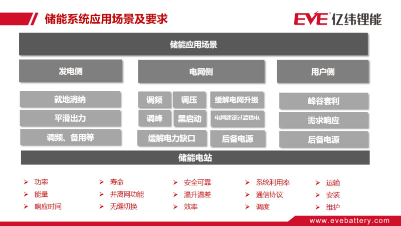以上是對新能源儲能的分析,針對儲能的應(yīng)用場景,同行都會有共同的認識,主要為發(fā)電側(cè)、電網(wǎng)側(cè)、用戶側(cè),比如說就地消納、平滑出力、調(diào)頻備用等,產(chǎn)品本身來看,要有以下的功能特性,功率、能量、響應(yīng)時間、壽命、并離網(wǎng)功能、無縫切換,安全可靠、溫升溫差、效率,系統(tǒng)利用、通信協(xié)議、調(diào)度等。