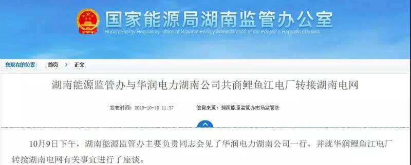 湖南能監(jiān)辦新聞稿稱,華潤(rùn)鯉魚江電廠地處湖南省南部,是“西電東送”項(xiàng)目,接入廣東電網(wǎng)。但是,湖南電力逐年緊缺,湘南地區(qū)嚴(yán)重缺乏電源支撐,無法承擔(dān)“西電東送”的功能。湖南能源監(jiān)管辦主要負(fù)責(zé)同志向國(guó)家能源局和省委省政府提出了將華潤(rùn)鯉魚江電廠轉(zhuǎn)接湖南電網(wǎng)的建議,得到上級(jí)領(lǐng)導(dǎo)的重視和支持。近期,湘粵兩省政府主要領(lǐng)導(dǎo)已就鯉魚江電廠轉(zhuǎn)接湖南電網(wǎng)形成共識(shí),并得到國(guó)家能源主管部門的認(rèn)同和支持。