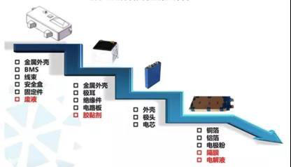 動力電池經(jīng)使用后,電解液成糊狀,很難使用機器設(shè)備將電池內(nèi)芯完好的分離成正負(fù)極片和隔膜?;厥掌髽I(yè)一般會進行電芯單體無害化處理,拆解破碎,篩選后得到正極粉、負(fù)極粉等。