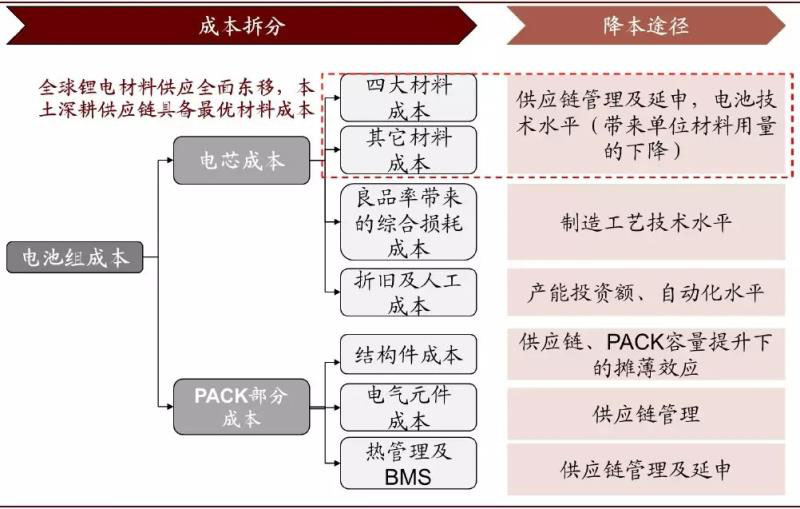 圖表: 動(dòng)力電池成本由多維度構(gòu)成,四大材料成本最為關(guān)鍵