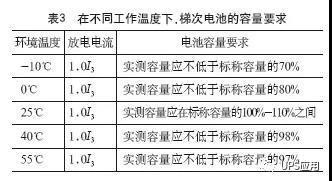 3 容量要求:梯級電池在不同工作溫度條件下應滿足表3所示的容量要求;