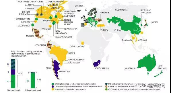 2018年世界范圍內(nèi)國家排放交易系統(tǒng)和碳污染定價系統(tǒng)現(xiàn)狀