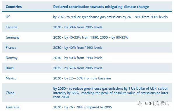 降低排放和增加溫室氣體吸收國家層面的目標(biāo)列舉