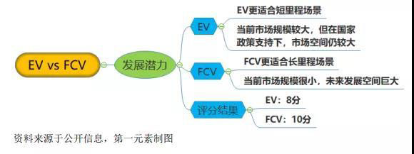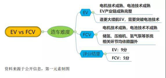 純電動(dòng)汽車(chē)(EV)與燃料電池汽車(chē)(FCV),被認(rèn)為是將來(lái)新能源汽車(chē)行業(yè)的兩只主力軍,它們均有著電氣化、綠色清潔和無(wú)噪音的特點(diǎn),然而由于核心技術(shù)的不同,它們?cè)诤芏喾矫娲嬖谥薮蟛町悺?