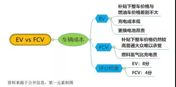無(wú)論是EV還是FCV,電池系統(tǒng)都占了整車(chē)的大部分成本,動(dòng)力電池系統(tǒng)占整車(chē)成本約40%,燃料電池系統(tǒng)占50%。