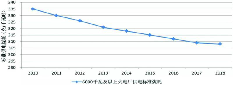 這是當(dāng)今社會(huì)最為關(guān)注的問題,煤電企業(yè)必須充分認(rèn)識(shí)到這即是社會(huì)經(jīng)濟(jì)發(fā)展的硬約束,也是煤電企業(yè)的行業(yè)使命,更是煤電企業(yè)自身發(fā)展的內(nèi)在需要,清潔能源發(fā)展是中國煤電發(fā)展的必經(jīng)之路。這幾年,煤電企業(yè)在節(jié)能減排方面做了很多工作,績效十分明顯,2018年6000千瓦及以上火電機(jī)組供電煤耗308克/千瓦時(shí),10年間降低20%,排放濃度也大幅降低。(如圖3和圖4)顯示了煤電企業(yè)節(jié)能減排的業(yè)績。