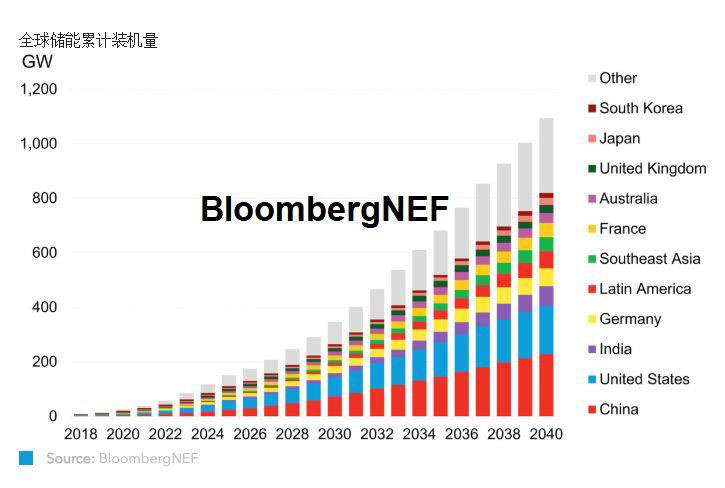 中國(guó)儲(chǔ)能網(wǎng)訊:全球儲(chǔ)能市場(chǎng)累計(jì)裝機(jī)規(guī)模將從2018年的9GW/ 17GWh增長(zhǎng)到2040年的1,095GW/ 2,850GWh,總投資額達(dá)6620億美元。
