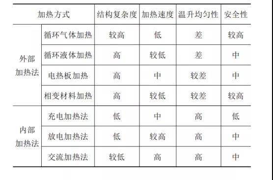 存在缺點的主要原因在于,外部加熱法采用的是電池外部熱源,熱量由電池外部傳遞到電池內(nèi)部,需要一定的時間,且易形成溫度梯度。