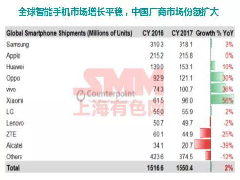 全球智能手機(jī)市場(chǎng)增長(zhǎng)平穩(wěn),中國(guó)廠商市場(chǎng)份額擴(kuò)大