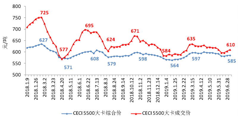 中國沿海電煤采購價格指數(shù)(CECI沿海指數(shù))5500大卡周價格圖