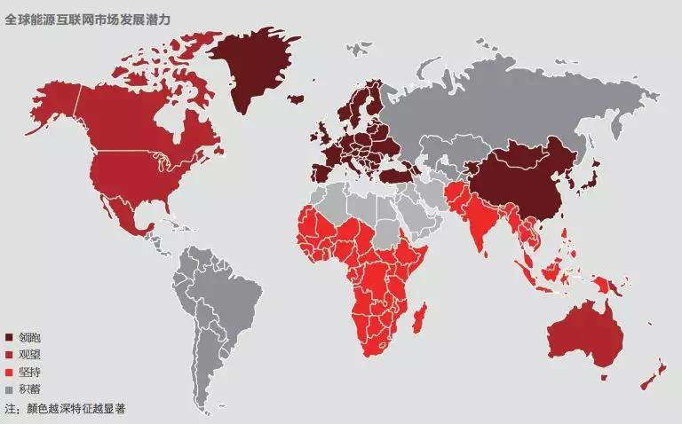 聚焦中國,可再生能源相關(guān)產(chǎn)業(yè)鏈增加值、物聯(lián)網(wǎng)發(fā)展所帶動的能源產(chǎn)業(yè)GDP增量、微網(wǎng)市場的大規(guī)模增長,以及新能源供應(yīng)和能效提升的新增投資,將聚合為巨大的能源互聯(lián)網(wǎng)市場增量。至2020年,中國能源互聯(lián)網(wǎng)的市場規(guī)模預(yù)計將超過9400億美元,約占當(dāng)年全國GDP的7%。歐洲和美國能源互聯(lián)網(wǎng)的市場規(guī)模2020年預(yù)計約為1.1萬億美元。中國能源互聯(lián)網(wǎng)市場與歐美并駕齊驅(qū),幾乎占據(jù)全球的半壁江山。從市場成熟度和發(fā)展?jié)摿蓚€維度評價,中國能源互聯(lián)網(wǎng)發(fā)展均領(lǐng)跑全球。