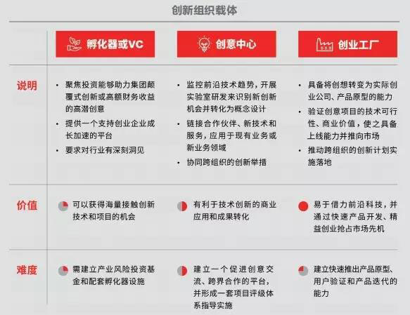 建立創(chuàng)新組織載體。必須建立與原有組織相對獨立的創(chuàng)新機構(gòu),如孵化器、創(chuàng)意中心、創(chuàng)業(yè)工廠等,甚至完全剝離創(chuàng)新業(yè)務(wù)成立新公司。并給予這些機構(gòu)更多機制體制突破,特別是人才、資金和市場化拓展等方面。