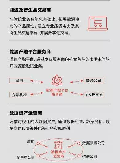 平臺化:企業(yè)基于豐富的數(shù)據(jù)資產(chǎn)和行業(yè)競爭力搭建平臺,為行業(yè)參與者提供能源交易、中介服務(wù)等平臺型增值服務(wù),整合行業(yè)資源,與其它市場參與者一起構(gòu)建平臺型生態(tài)系統(tǒng)。