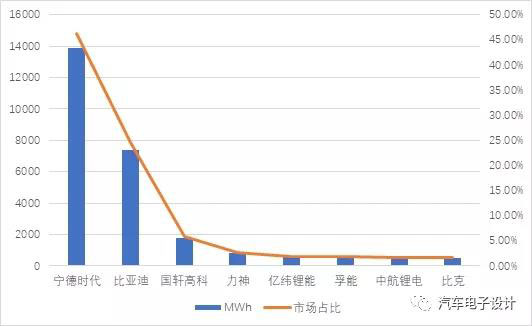 圖1 2019年上半年中國(guó)動(dòng)力電池的格局