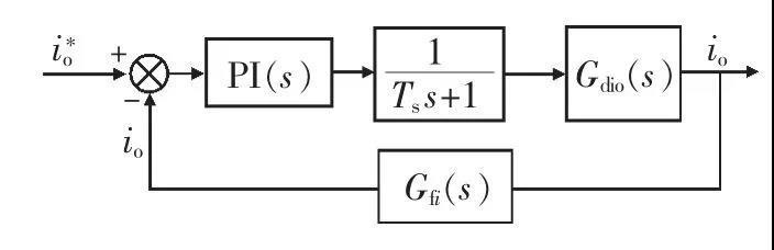 隔離三電平DC/DC 變換器的輸出電流經(jīng)PI調(diào)節(jié)器閉環(huán)控制的框圖如圖8 所示, 其中G f i(s)為電流采樣的傳遞函數(shù);T s 為PWM 周期??刹捎霉こ淘O(shè)計法[9]對PI 調(diào)節(jié)器進行設(shè)計, 將系統(tǒng)設(shè)計為典型Ⅱ型系統(tǒng)。
