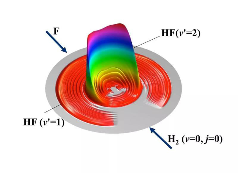 為了揭示實(shí)驗(yàn)所觀測到的后向散射譜特征,科研人員進(jìn)行了詳細(xì)的動(dòng)力學(xué)分析。結(jié)果表明,位于5meV能量處的后向散射譜峰,是精確對(duì)應(yīng)于F+H2反應(yīng)的基態(tài)共振態(tài);而位于20meV能量出的后向散射譜振蕩,是精確對(duì)應(yīng)于F+H2反應(yīng)的激發(fā)態(tài)共振態(tài)。