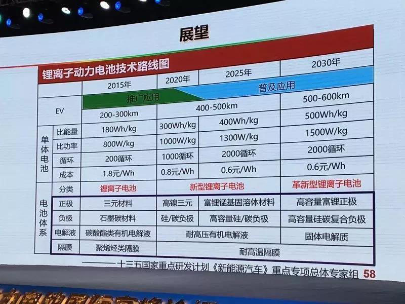 在此基礎(chǔ)上,國家新能源汽車重點專項的專家組在兩年前形成了下一步鋰離子動力電池技術(shù)路線圖,要形成安全的高比能量電池。