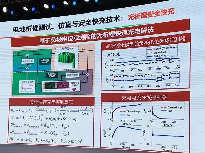 以此為基礎(chǔ),我們可以進行最優(yōu)充電的控制,以基于模型的負極電位觀測器為基礎(chǔ),可以把負極電位觀測出來的電位,跟參考電位進行比較,通過調(diào)整充電電流使這個電位差趨于零可以實現(xiàn)無析鋰的快充。