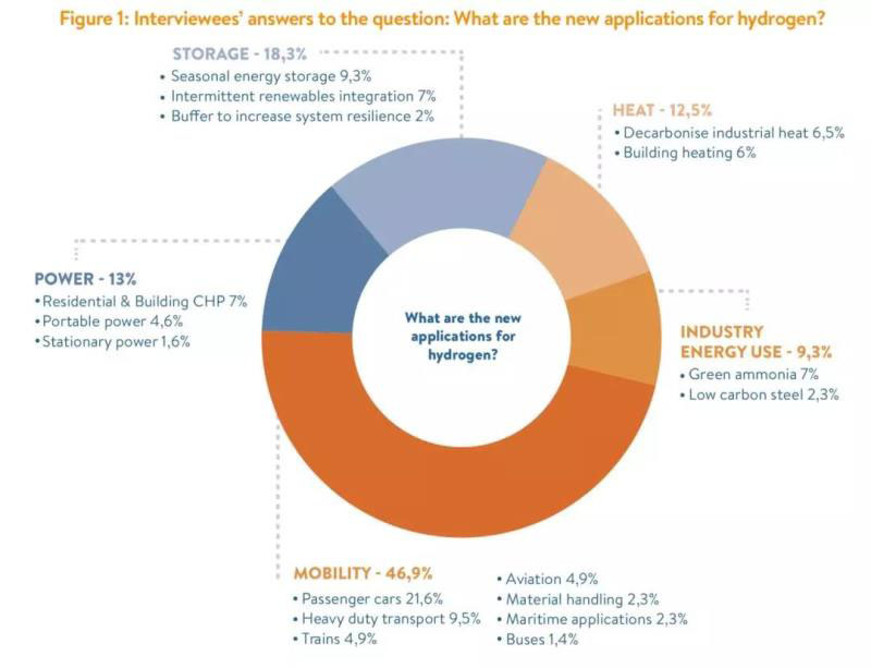 中國儲能網(wǎng)訊:世界能源理事會(WEC)采訪了全球26家能源公司的能源技術(shù)主管(名單見后),請他們預(yù)測2040年氫能的應(yīng)用領(lǐng)域,結(jié)果綜述如下: