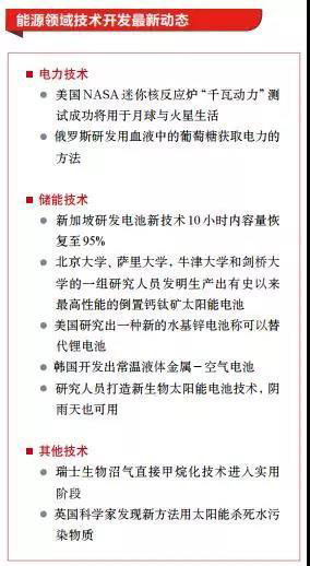 未來(lái),能源將繼續(xù)向著低碳化、綠色、高效方向發(fā)展。歐盟科研創(chuàng)新資助計(jì)劃“地平線2020”2018 ~ 2020 年度支出方案中,“低碳和適應(yīng)氣候變化的未來(lái)”領(lǐng)域?qū)@ 33 億歐元預(yù)算,按年度工作計(jì)劃,可再生能源、能效建筑、電動(dòng)運(yùn)輸和儲(chǔ)存方案 4個(gè)清潔能源領(lǐng)域的項(xiàng)目將獲 22 億歐元撥款。俄能源部宣布支持設(shè)立遠(yuǎn)東聯(lián)邦區(qū)可再生能源發(fā)展基金,并將制訂具體建議。英國(guó)將投入 2800 萬(wàn)英鎊資助可再生能源創(chuàng)新、智慧能源系統(tǒng)創(chuàng)新、低碳工業(yè)創(chuàng)新、核能創(chuàng)新等能源創(chuàng)新項(xiàng)目,作為能源創(chuàng)新計(jì)劃 (2016 ~ 2021年 )的一部分。特朗普政府宣布退出巴黎協(xié)定,全球應(yīng)對(duì)氣候變化形勢(shì)變得撲朔迷離,但全球能源領(lǐng)域轉(zhuǎn)型已是大勢(shì)所趨,綠色能源技術(shù)、低碳能源技術(shù)必然是未來(lái)發(fā)展主要方向。