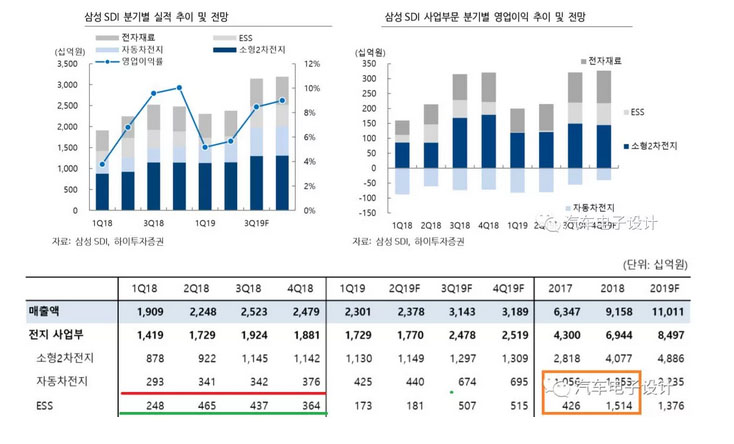 備注:2018年三星的汽車電池銷售額比之2017年差異不大,2019年的估算是基于BMW和VW的強(qiáng)勢(shì),是基于哪些需求也看不懂。