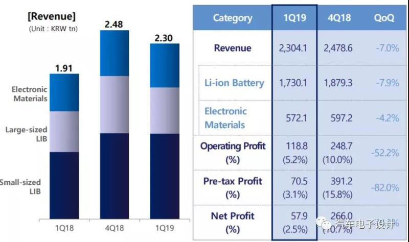 如下圖所示,SDI的電池業(yè)務(wù)2019Q1大約是100億左右。
